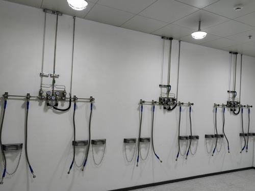 3.5N氫氣、氦氣、預先存留氣掌管線通過OD1/4”(6.35mm)的熱力pvc管道,支線通過OD1/4”(6.35mm)的熱力pvc管道。用激光焊接三通接頭分成支路來對設施設備去供氧。